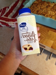 - Pudra över lite socker och kanel samt täck med smuldegen.