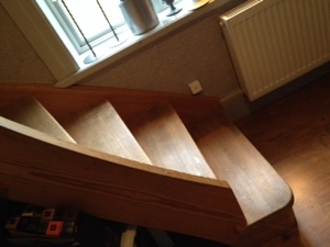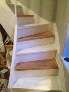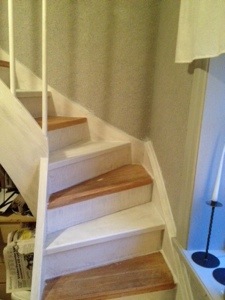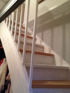 Nu äntligen har jag satt i gång att måla vår trävita och supertråkiga trapp..Trappen skall nu bli vit och Slipning och grundmålning stod på schemat i dag..