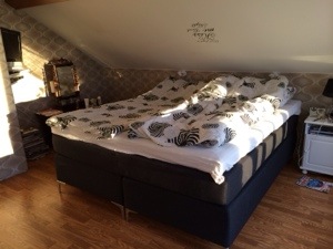 Den nya sängen blev i alla fall en succé.. Jag sover äntligen som en stock och vaknar inte hellre längre med jordens ryggvärk, fatta vad skönt det är! Per sover också som en stock, fast det vill han inte helt erkänna… Men han har inte sen vi började sova i den varit vaken en end gång när jag kommer upp till sovrummet, och det kan då handla om att jag kommer 5 min efter… Jag visste att han också skulle trivas.. Och jag visste även att han inte skulle erkänna det heller.. Haha!