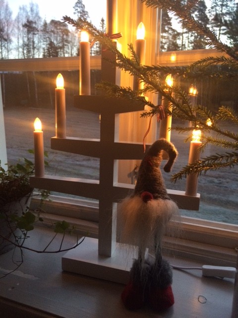 Är det fler än jag som var tidig med att göra advent i år? Jag fixade klart allt tidigare än vanligt i år och det berodde på att jag jobbade 7 dagar i rad inkl. söndagen den 1:a advent så jag skulle då få ont om tid att hinna med allt innan så jag tjuvstartade kan man säga 1 vecka tidigare.  Jag skulle varken fått tid, ork eller lust att hålla på med städning och pyssel sent på kvällarna den veckan. Jag hade några dagar ledigt innan så jag storstädade 2 dagar i rad och vände upp och ner på precis allt i hela huset.  Allt julpyssel fick komma fram. Allt förutom julgranen den tar jag in någon dag innan julafton. Eftersom jag hämtar det mesta julpyntet från naturen så tycker jag inte att det spelar någon roll att allt åker fram  på en och samma gång. Jag är inte så förtjust i de amerikaniserade tomtarna så värst mycket så dessa slopar jag nästan helt och hållet. Jag föredrar hellre tomtar i ull och tyg och som snarare liknar vättar mer än tomtar.