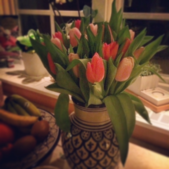 Igår var det som alla er vet Tulpanens dag och jag bara älskar dessa blomster så självklart firade jag dagen med att köpa 20 färska fina tulpaner.. Jag valde två nyanser av rosa.