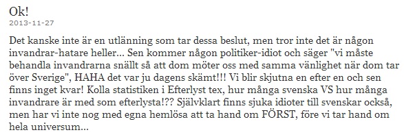3. Nu är ju inte jag någon expert på ämnet men att grunda sina åsikter på vilka som är efterlysta i programmet Efterlyst gör mig inget annat än gråtfärdig och illamående på samma gång.