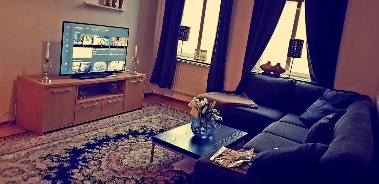 NU tänkte jag att faktiskt de va dags för en living room tour till er från min och älsklingens lägenhet i stan i örebro.. Lägenheten vi bor i är 73 kvm och en gammal med högt till tak som jag älskar och har alltid drömt om. Jag och killen bor ju med våran chow chow vovve bobo som är en fin hona som oxå trivs jätte fint hos oss i stan. Det är underbaraste jag vet att få vara hemma med vovve och älsklingen, vi har nu kommit i ordning lite och jag tänkte att därför lägga upp lite foton från vårt största och mest omtyckta vardags rum så kommer toa hall och sovrum dessutom kök en annan dag. Jag vill köpa lite nya plädar och prydnad till fotölj avdelningen som ska upp annars är det näst klart med allt.