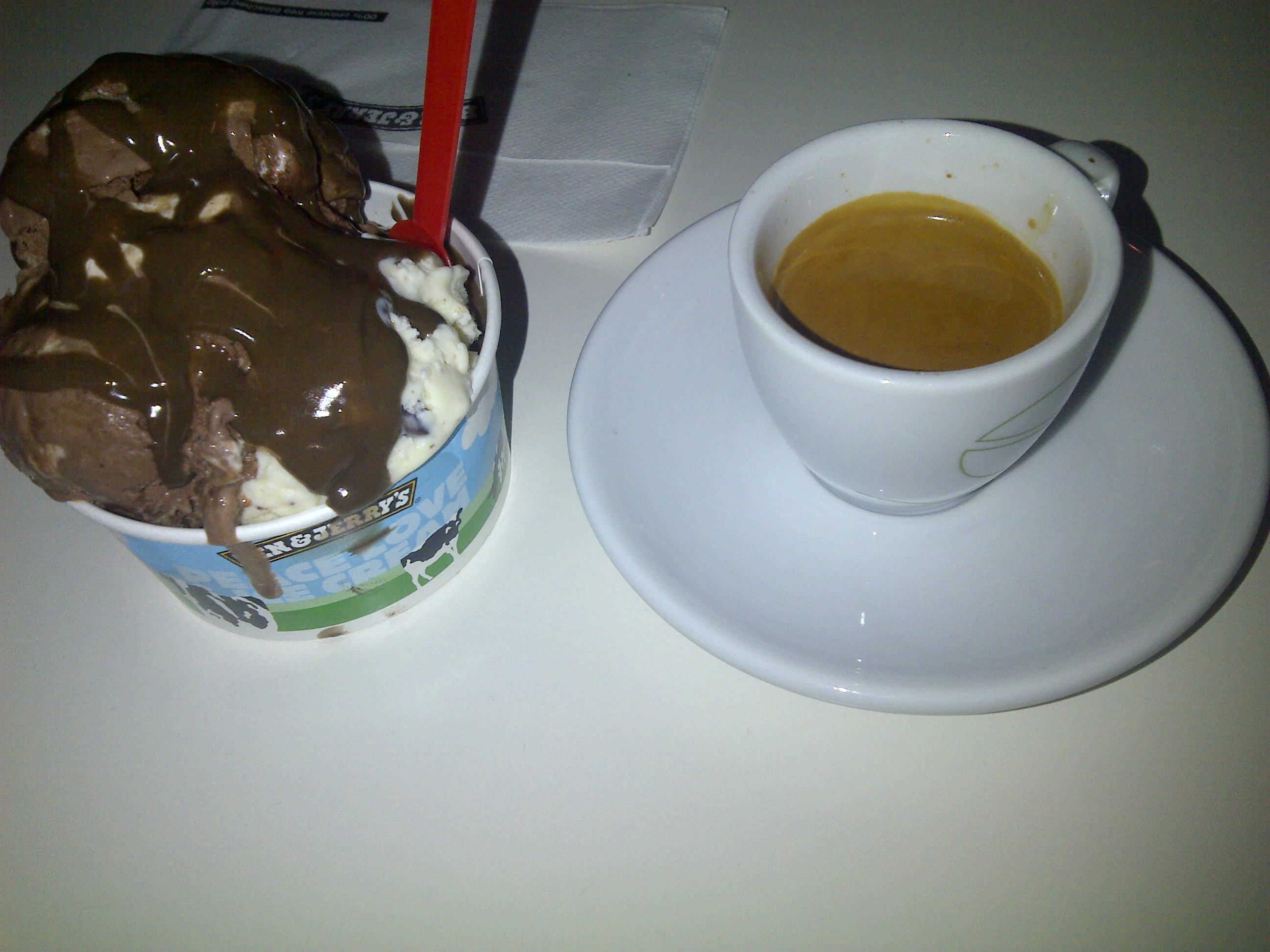 Sen blev det en stund hos Jonas på salongen. Maja behövde lite mat och en annan skulle vänta på Jenni och Matilda. Blev lite fika efter tillfixningen av håret på Matilda. Bästa glassen på Ben and Jerrys 😉 Mums! Plus en expresso 😉