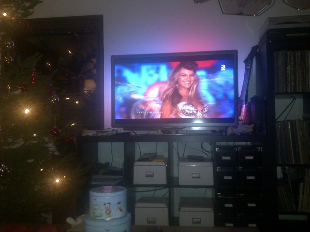 Första VS Fashionshow med Eyla 😉 Hann ju inte se den på juldagen. Så nu sitter vi och myser i soffan. Har varit fullt upp de här senaste dagarna. Igår var mammas sidan här och firade jul. Trots vårat långsmala hus så fick vi plats 😉 Så det var skönt. Och dagen innan var vi ju på Larmgatan 10 och åt god mat med vänner.