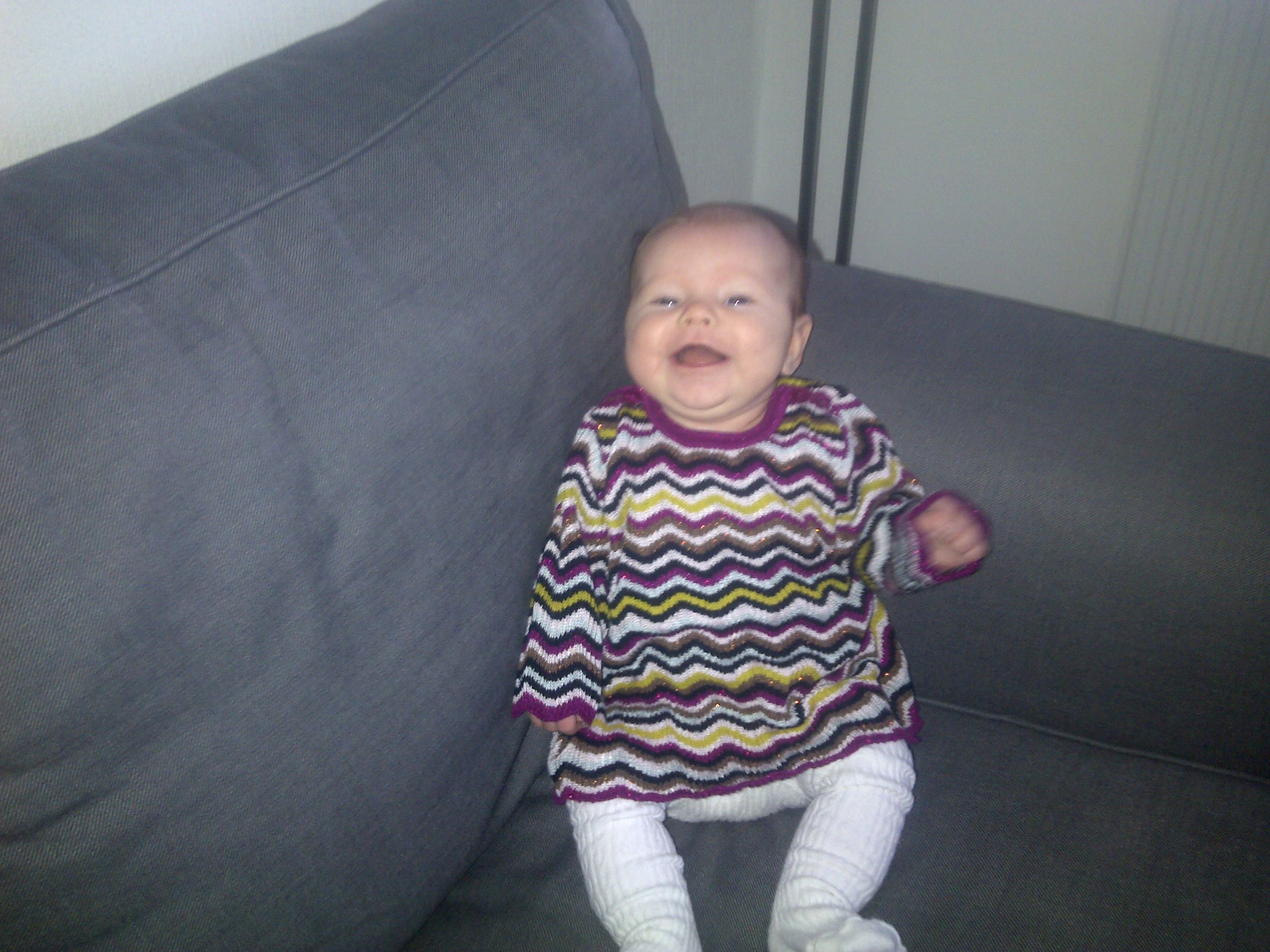 Nu är vi på väg till stan för lite fika med gamla kollegor. Och Eyla fick på sig den nya klänningen som jag bara älskar 😉 Hon är däremot inte så glad på mig då jag har fått väcka henne två gånger… Men men hunden måste bajsa och sen iväg. Hon somnar nog gott snart i vagnen.