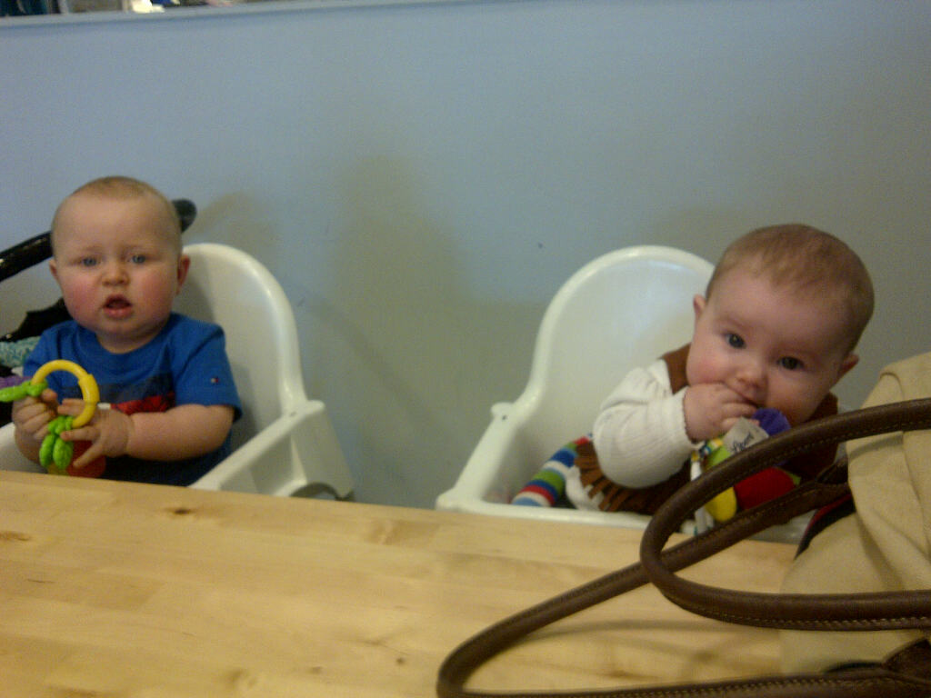 Idag var vi på ikea och lunchade med L & M och H & O. Ja och en annan avr ju astrött efter de här nätterna vi har haft. Så vad gör man jo man har sönder ett glas i gången till maten. Pinsamt!!!! Och ser allmänt helt sunk ut. Men är man morsa (trött) så är man!