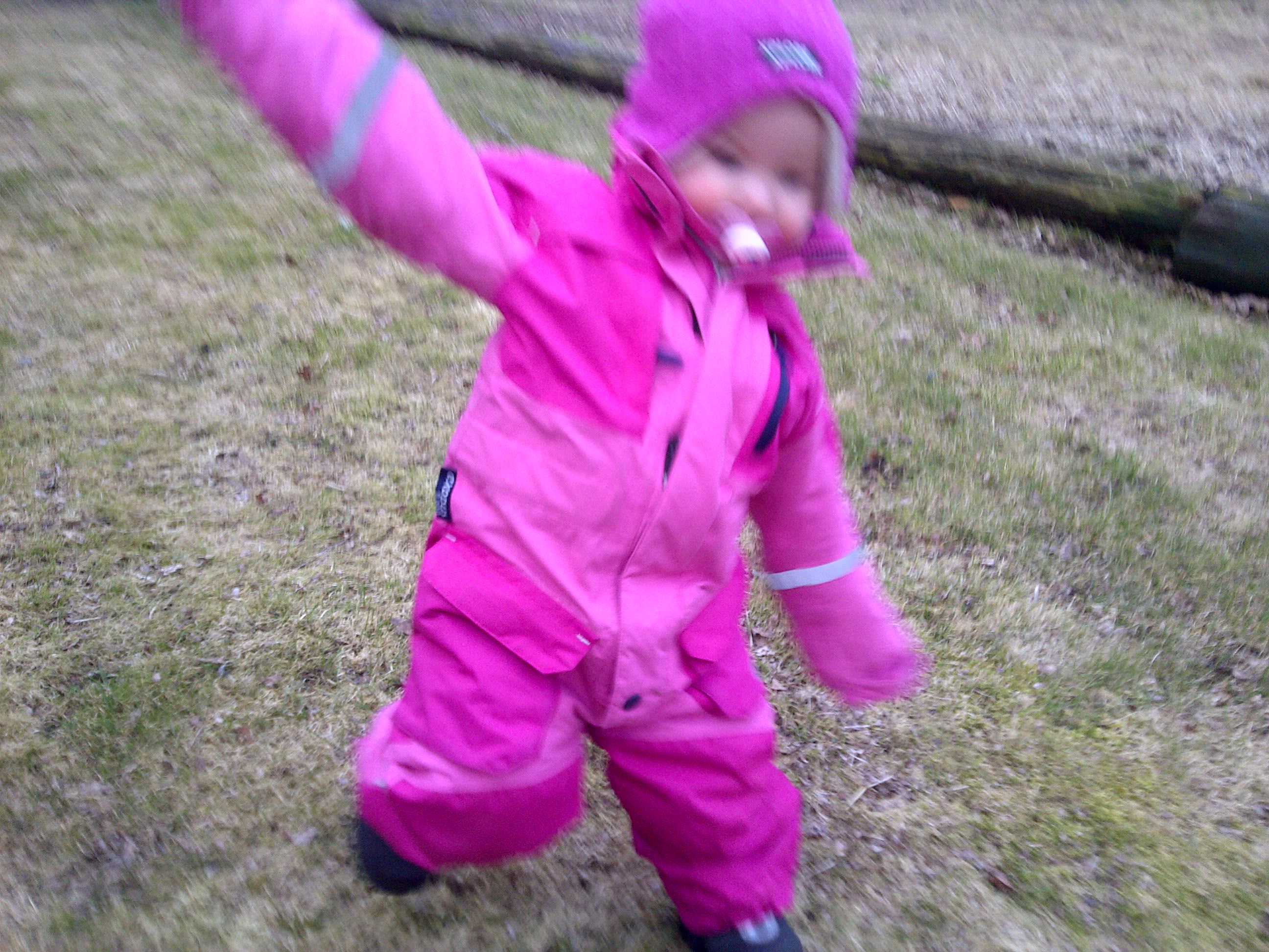Det är så himla kul att se henne gåendes ute med sin vagn. Hon tog några ensamma steg ute på efm, men vill ju helst gå med sina knän ;)…