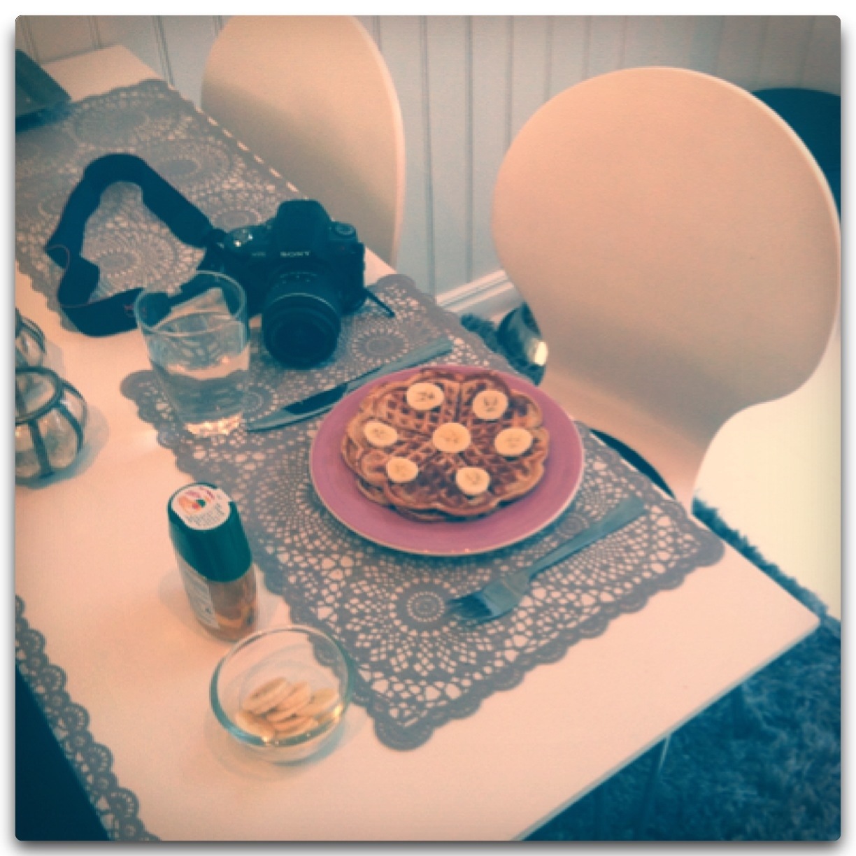 Gjorde väldigt goda och hälsosamma våfflor idag till mellanmål! De var över förväntan. Det enda var att jag inte fick de så krispiga.
