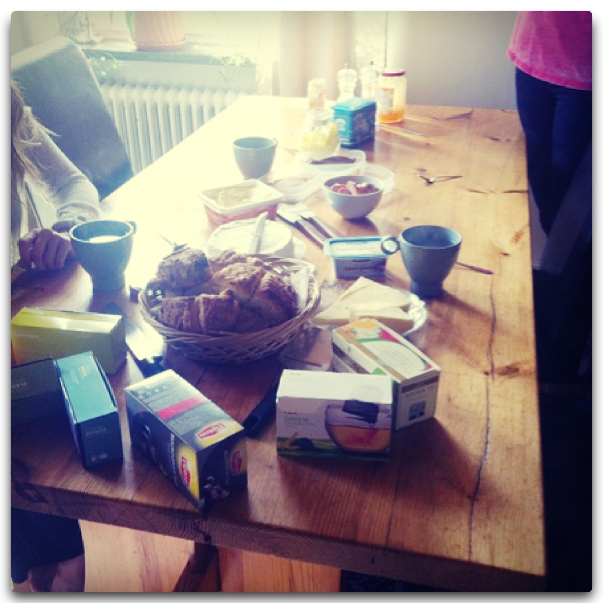 Har precis avslutat en mycket god men lite sen frukost med fina och saknade vänner! Mathilda hade bakat scones och till lite efterrätt fick vi rabarberpaj. Riktigt lyxigt!! Ikväll blir det födelsedagsmiddag för Alice med släkten så det blir en festlig dag idag! 😀