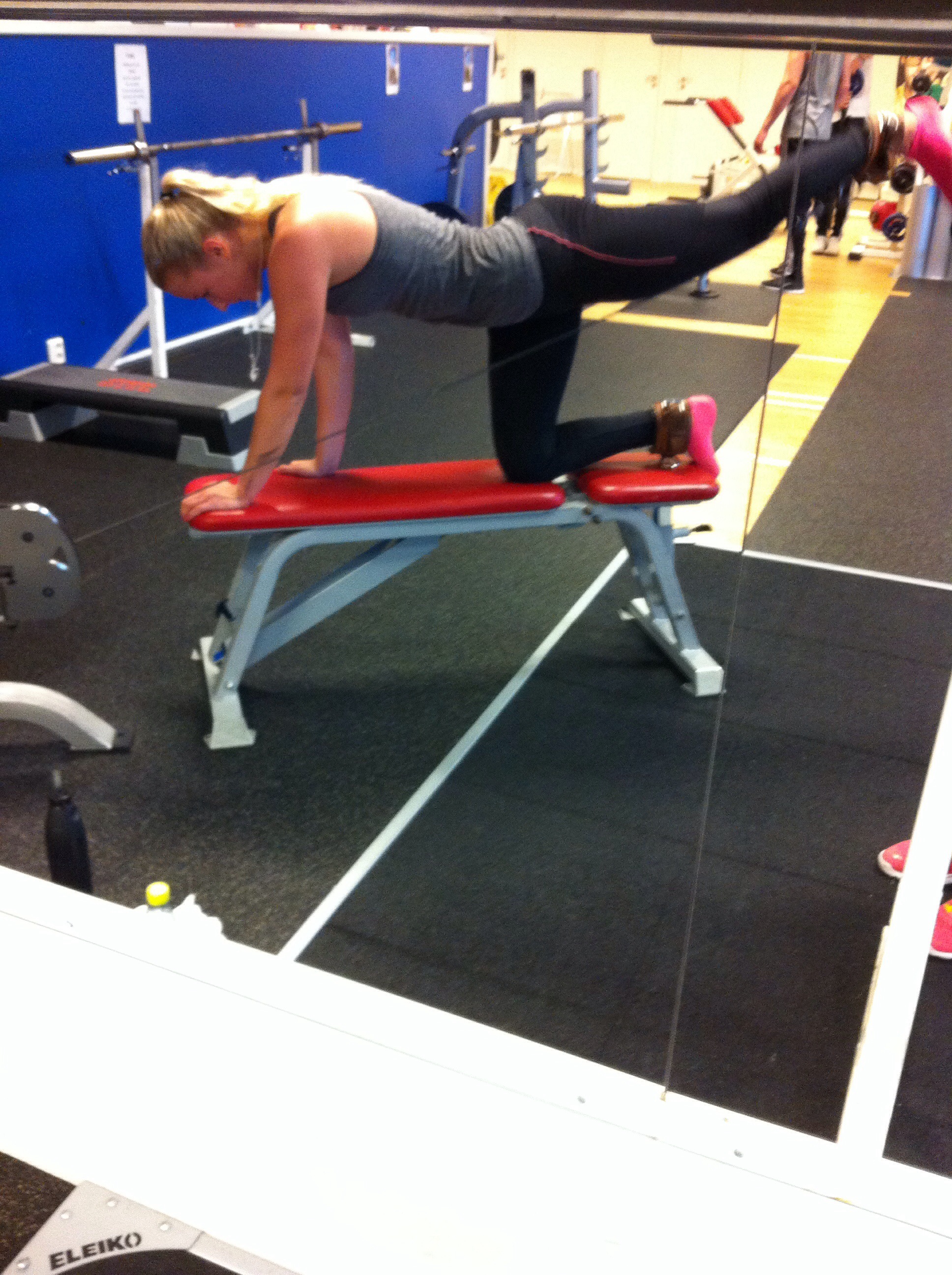Ss knäböj och armarna upp över huvudet med medicinboll 3×10