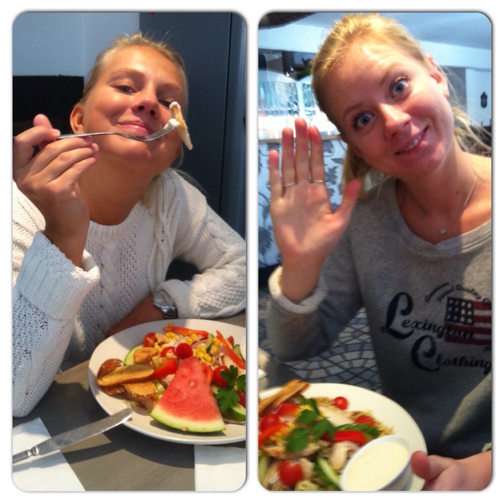 Vad dagarna går undan! Nu är det snart redan dags att gå till jobbet igen! Vid tolv mötte jag upp Evelina och Angelica i stan och vi bestämde oss för att ta varsin sallad på Snuggles, riktigt god! Där satt vi och snackade om allt mellan himmel och jord, pratade minnen och framtida planer typ! Man märker verkligen att vi just nu befinner oss mellan så stora saker och att det egentligen är nu som vi verkligen kan styra oss PRECIS vart vi vill. Det enda kravet jag har är att vi aldrig ska skiljas åt! Nu har jag precis slängt i mig lite mellanmål innan det är dags för jobb. Skulle egentligen träffa Pontus ikväll men han är fortfarande sjuk.. Så jag försöker bestämma mig om jag ska träna ikväll eller inte, och det är omöjligt. Det är väl så, jag lär inte ångra ATT jag tränade men jag kan ångra att jag inte gjorde det, men frågan är om jag orkar! Det är kanske värt att ge det ett försök och istället för att se det som ett misslyckande om det går kasst, se det som att det var bättre än inget..? VI GER DET ETT FÖRSÖK, helt enkelt!