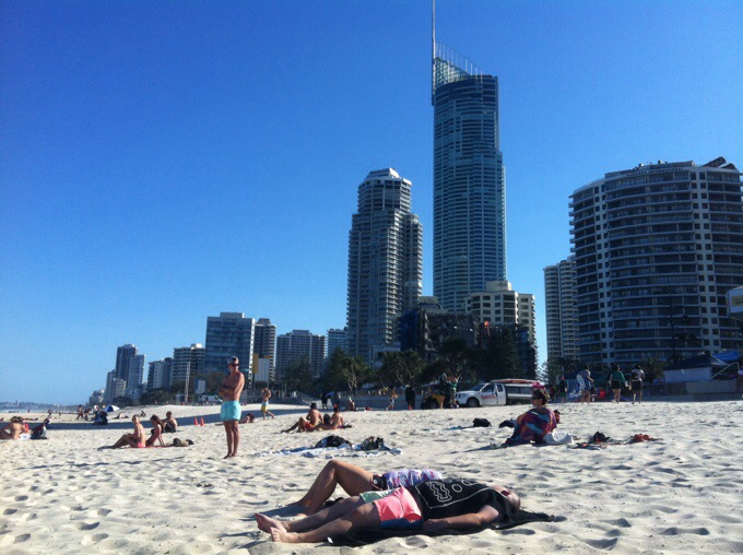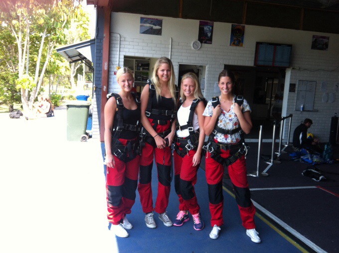Såja! Efter ett par dagar utan internet är jag nu tillbaka. Vi har spenderat några dagar i Byron Bay nu där det bjöds på både surfing och fallskärmshoppning. Surfingen gick över förväntan och vi alla fyra lyckades stå upp! Däremot har jag inga bilder därifrån och jag får inte de som fotografen tog förrän jag är hemma. Fallskärmshoppningen var ju också bara helt otrolig!! Det var Australiens högsta på ca 4,2 km upp i luften. Tänk att man bara kastar sig ut och faller fritt i hela 60 sekunder. Känslan går inte att beskriva! Igår tog vi en liten utgång till Cheeky Monkey’s där det bl.a. Bjöds på en bikinishow som tjejer hade ställt upp på.. Och herregud säger jag bara som de pressar varandra och är beredda att göra så pass mycket inför helt främmande människor.. Men killarna stod klistrade och fick sig en bra kväll.. Haha! Idag tog vi bussen till Surfers Paradise och har gått en liten runda runt och kollar in stranden osv. Det blåste dock väldigt mycket nere på stranden. Ikväll ska vi ha BBQ här på vårt hostel och sen gå ut, ska bli trevligt!