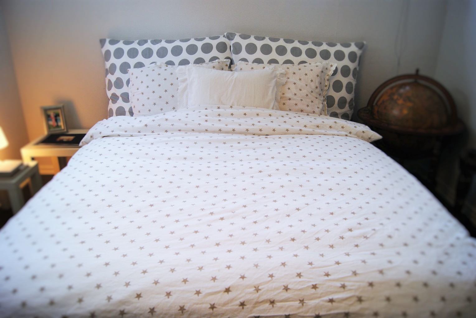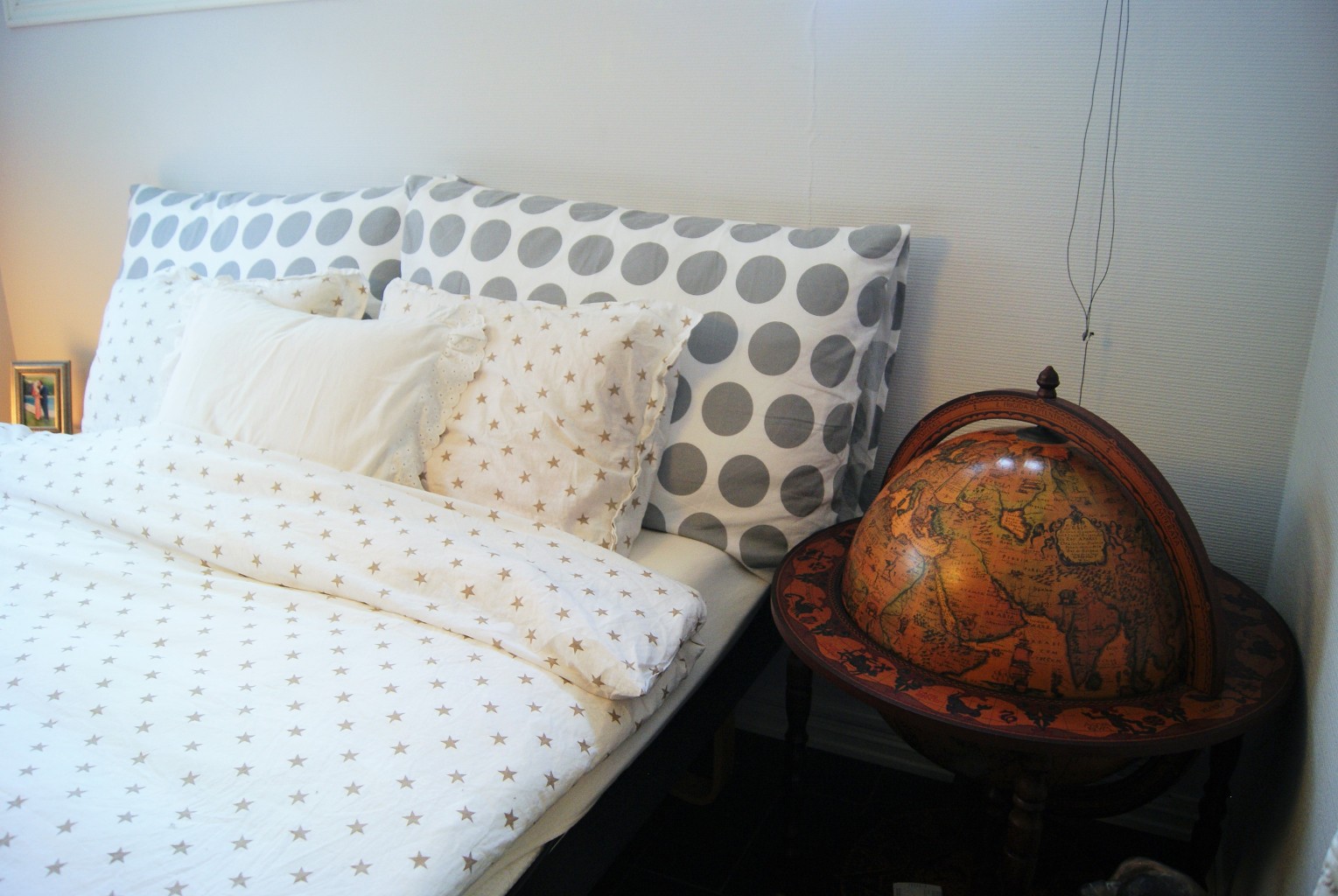Än så länge har vi inte ordnat mycket mer än sängen, en spegel och lite små detaljer som vi hittade när vi var och handlade. Vi har även kollat ut en soffa som hade ett väldigt bra erbjudande, så det blir eventuellt den också. Trivs otroligt bra i denna underbara sängen. Kuddarna blev vi alldeles förälskade i, så sköna de är! Perfekt när man ska ligga och kolla på film eller läsa.