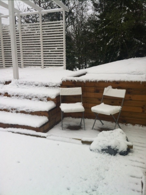 Jag lider inte av”vårhybris”, tycker snarare det är skönt att ha tröjan nedkavlad över mina bleka armar ett tag till. Jag behöver inte vårsolen för att känna glädje och heller inte regn för att känna vemod. Vädrets makter är kort sagt, inget jag orkar lägga energi och tid på att elda upp mig över.. Men trots min svaga våriver kan jag ändå tycka att detta är lite väl tjurigt av Kung Bore! 😛 / Pernilla