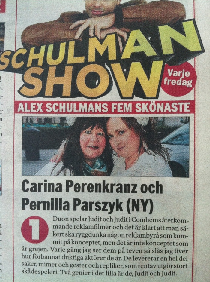 Härligt av Alex Schulman att uppmärksamma våra arbetsinsatser som skådespelare! Tack Alex, det värmer!! Det är ju endel jobb bakom figurerna Judit o Judit.:)