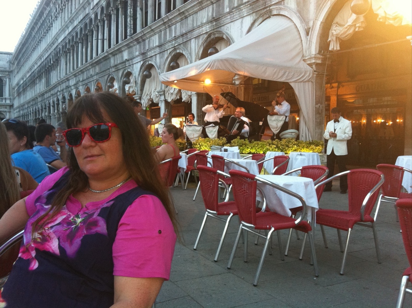 Att sitta på Markusplatsen o ta en fika är bland det dyraste i Europa. Men du får då även ljuvlig musik i öronen o utsikten är magnifik. För att inte tala om bara känslan av att sitta där. Du får betala runt 120 kr- en riktig turistfälla! Men ska jag vara ärlig så är det inte första gången. Jag tycker att det är värt varenda öre.20120704-183441.jpg