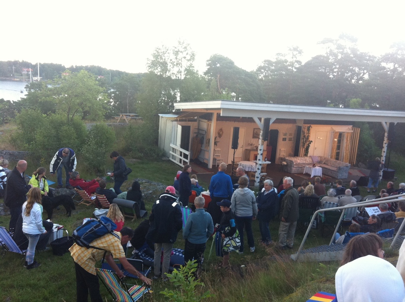 Är det sommar och är man ute i skärgården, ja då är ett folklustspel ett måste. Ikväll befinner jag mig i Arkösund för att se amatörsällskapets ’Lösgodis”. Sitter på Kvarnberget med en magnifik utsikt.