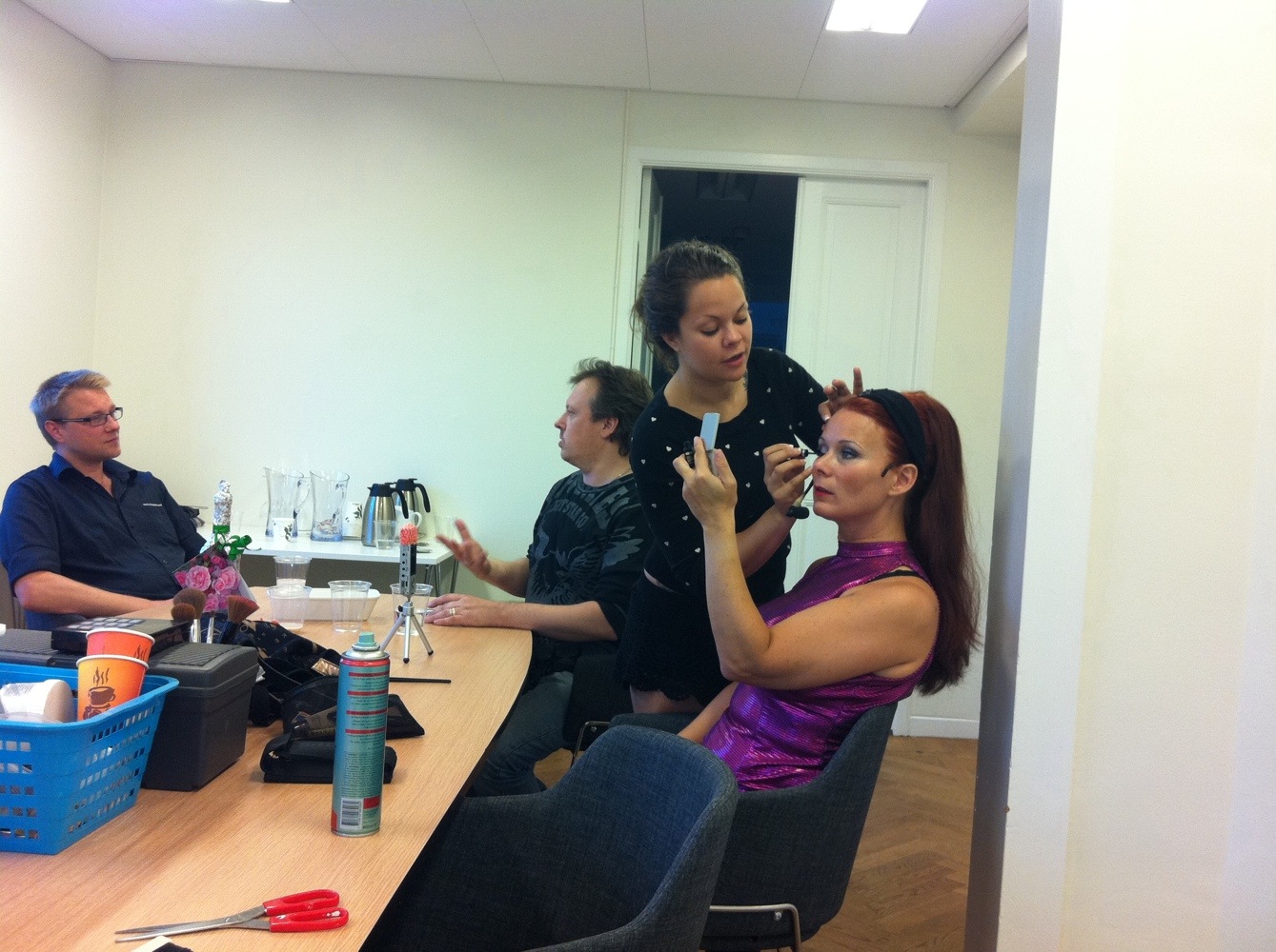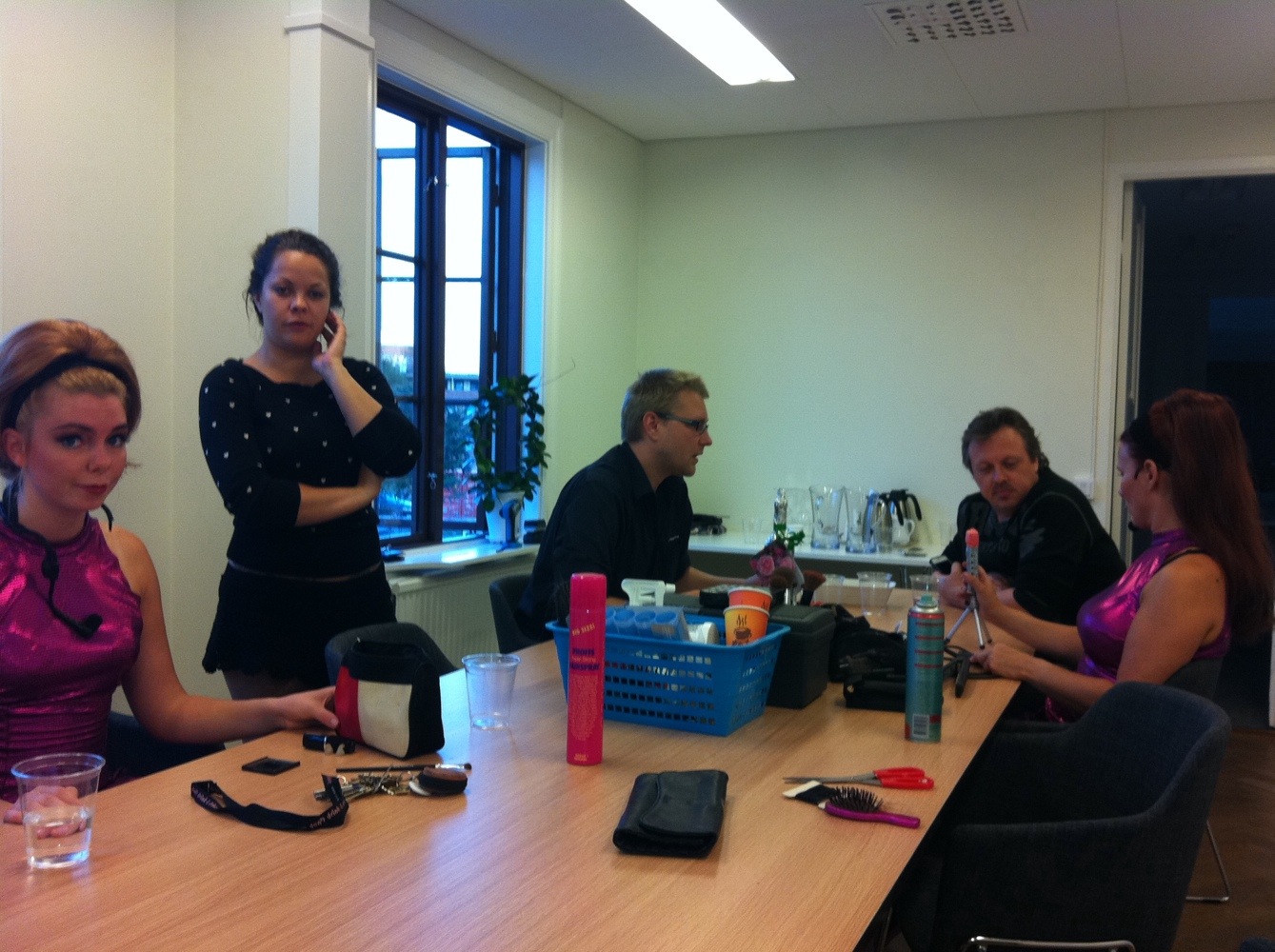 Paus i logen 21 aug 2012 av carinapernilla Skönt med paus o lite återhämtning med skitsnack o fika. Bättra på make up o springa på toa. Tänk att tekniker alltid ska ta upp de bästa platserna !