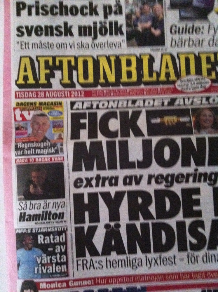 För inte så länge sen kunde man läsa tre dagar gamla tidningar när man semestrade runt Medelhavet . Idag efter frukost så kollade vi in tidningsståndet o blev chockad när dagens Aftonbladet finns . Klockan är 10.00 i Turkiet o dagens Aftonblad är redan på plats. Sjukt cool. Enda skillnaden är väl att allt är i svart-vitt inne i tidningen! Grymt tycker carina!!