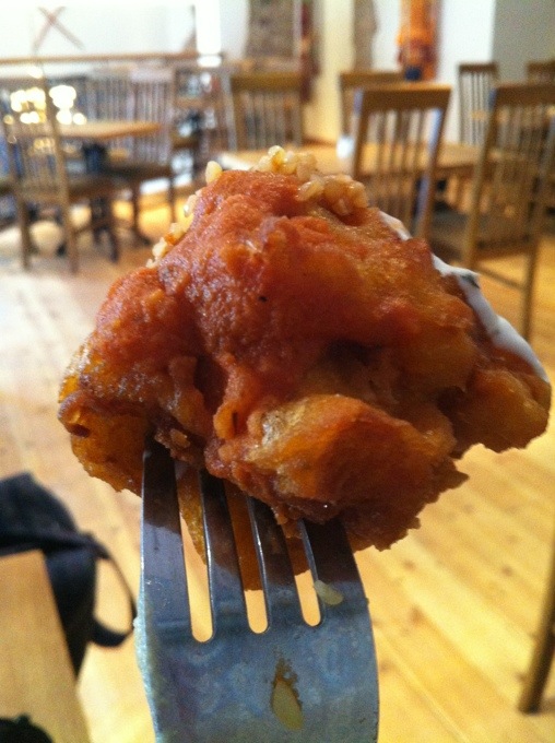 …när denna friterade blomkål skall föras in i munnen. Tuggas låångsamt för att sedan rinna ner i strupen. Landa pladask i magsäcken för att bearbetas… Ni förstår ju själva!! Detta är en spännande dag!