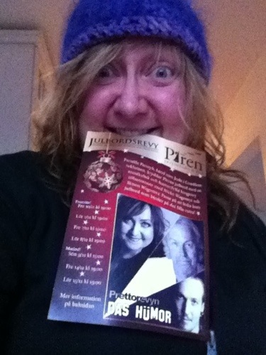 Försöker pigga upp mig ute på balkongen, men ”vettefasen” om det funkar när det är kvällsmörkt hela dagen..På fredag spelar vi vår första Julshow på Havspiren i Norrtälje!! Ska bli rackarns kul! Jag har fyra roliga monologer och ett gäng m låtar som skall repas in, så det är bara att sätta igång :)) /Kram Pernilla