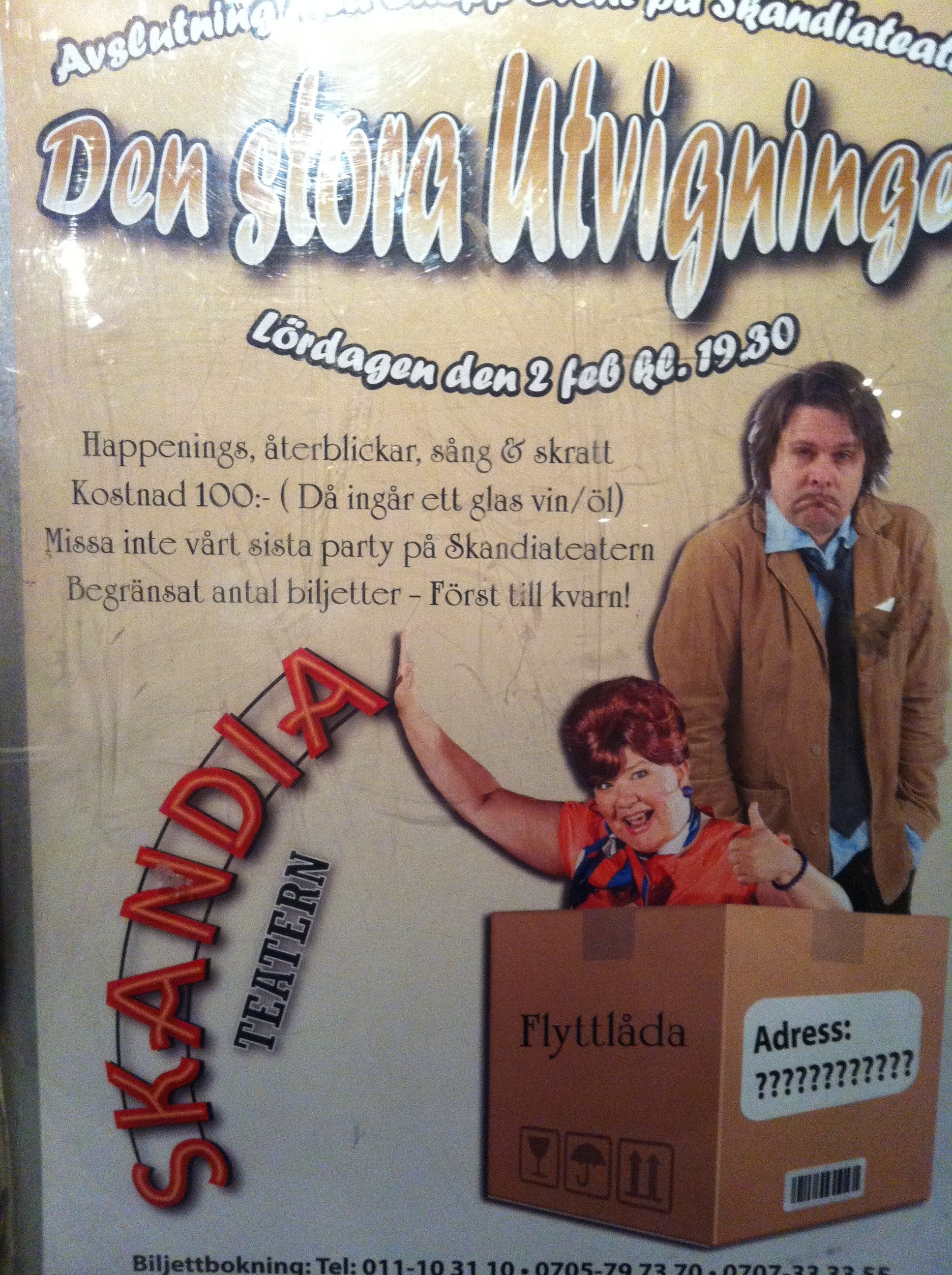Slutet närmar sig 21 jan 2013 av carinapernilla Ja,nu är det inte många dagar kvar på Skandiateatern . Slutet o vårt stora avslutningspartaj närmar sig. Den sk Utvigningen äger rum 2 febr! 🙁 carina