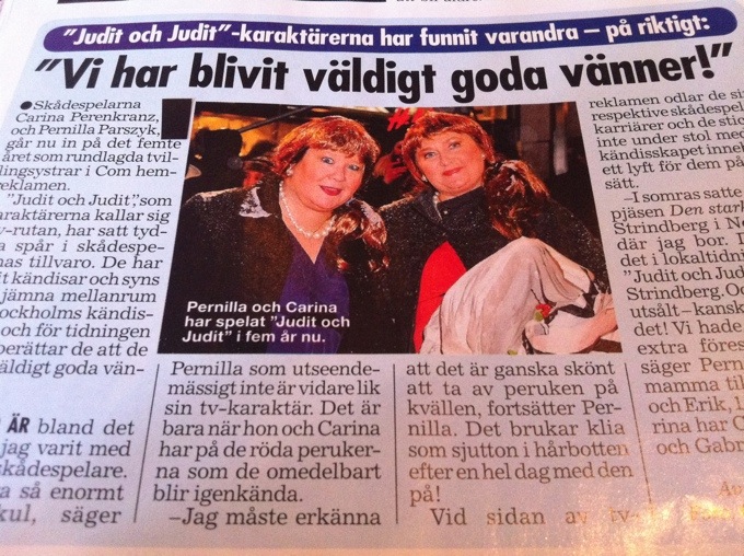 Judit & Judit = vänner 17 apr 2013 av carinapernilla Enligt Hänt Extra har Carina & Pernilla blivit nära vänner sedan de jobbat med karaktärerna Judit & Judit! Ja, vi kände ju faktiskt inte varandra före konceptet. Carina 🙂