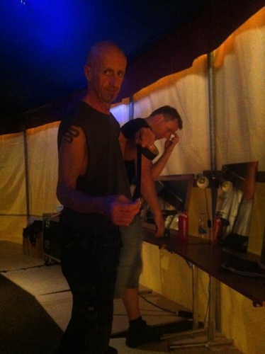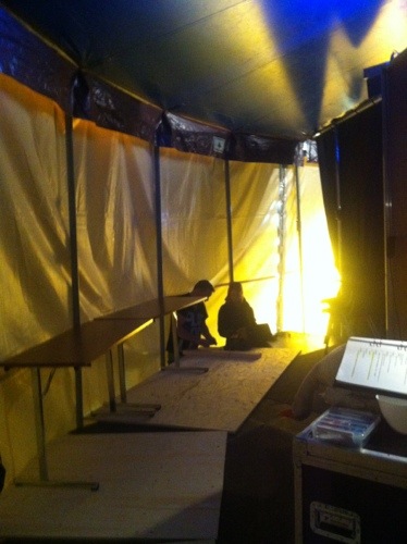 Kevin och Peter fixar till Backstage. Det börjar bli riktigt nice!! Vi har inga loger, så det blir att hänga backstage i tältet nu under föreställningarna. Ska bli galet skönt och kul att vara på samma ställe i tre veckor. Det kan bli lite rörigt i skallen när man byter stad att spela i varje dag, som vi gjorde i våras!