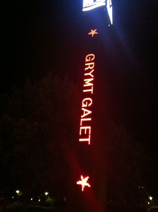 Kul neonskylt utanför Falkhallen. Dagens temperatur har