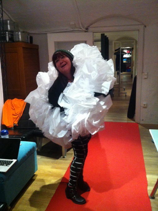 Vi provar kostym på Diamond dogs kontor, House of dogs, inför WADgalan 2013. Här bland dragdrottningarna finns det skrudar vill jag lova. Denna boa vittnar inte minst om det..hehe. Vi får väl se vad der blir för skrud i slutändan. Den som kommer till ”Börsen” den 1/12 får se 🙂
