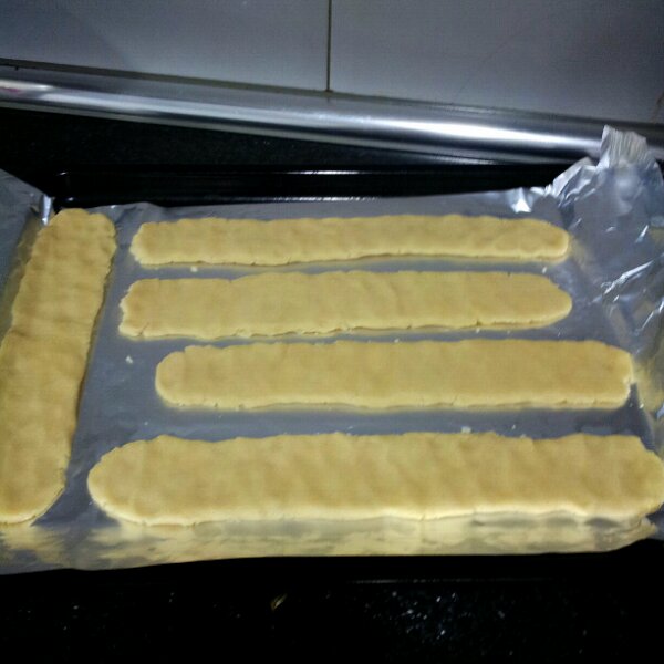 Mezcla la manteca con el azúcar y el polvo de vainilla. Luego mezclas la harina con la sal y la levadura y lo añades a la mezcla de manteca. Después añades el caramelo y lo trabajas todo con las manos hasta obtener una masa suave y lisa. Divides la masa en cinco y la pones en una fuente en tiras de unos 4 cm de ancho (ver foto). Lo dejas en el horno durante unos 12 minutos en 175 grados y luego usas un cuchillo afilado para cortar las galletas mientras todavía estén calientes. Disfruta!