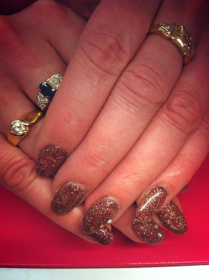 Tiden var knapp denna intensiva stylingdag så det blev inte de naglar vi planerat. Första gången jag har ett glitterlack över hela nageln så det känns lite ovanligt men jag gillar de äkta Swarovski-kristallerna iaf. 😉