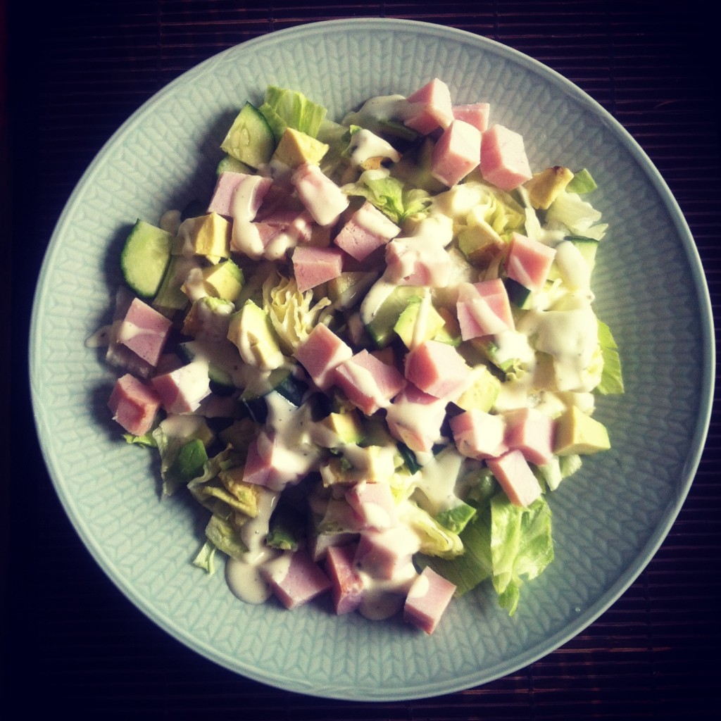 kl 12. Lunch (avokadosallad med kassler)