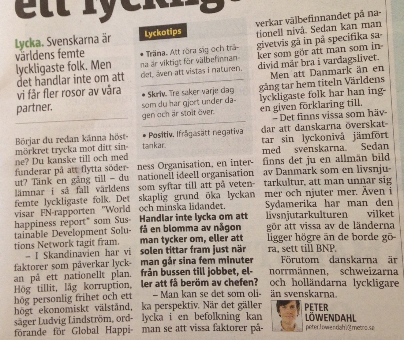 Svenskarna är världens femte lyckligaste folk.