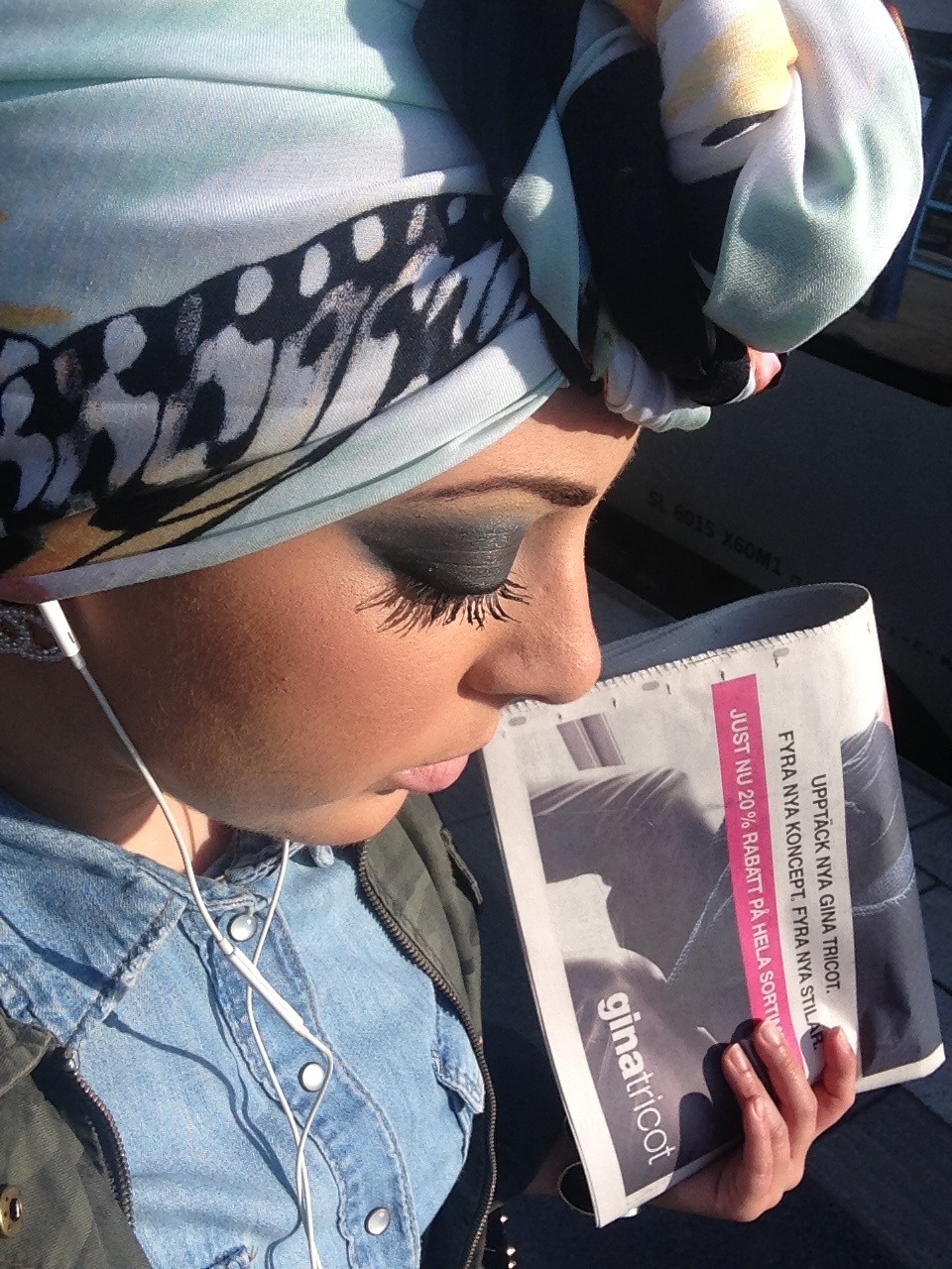Är på väg till ett möte är dock en aning försenad för att min nya sjal med en massa härliga fjärilstryck var större i storleken än vad jag var van vid så det tog några minuter extra att få turbanen på plats. Vill ni att jag visar er hur jag knyter mina turbaner?