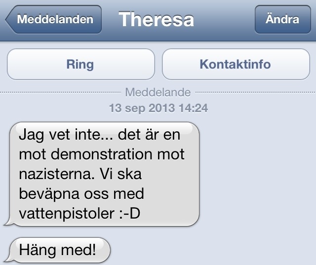 Nu på Lördag den 14 September firas kungen 40 år vid statsmakten i stan och en demonstration mot nazisterna sker på Hötorget Kl 12:00 imorrn. Medtag vattenpistoler och visa ditt stöd