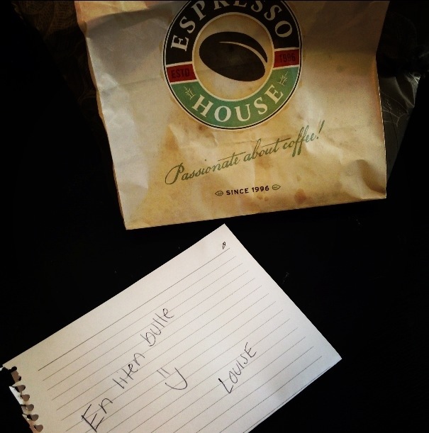 Haha hittade en present på mitt bord! 13 september 2013 av coverista Världens sötaste Louise var seriös med att lämna en bulle på mitt bord. Det är kärlek det Haha