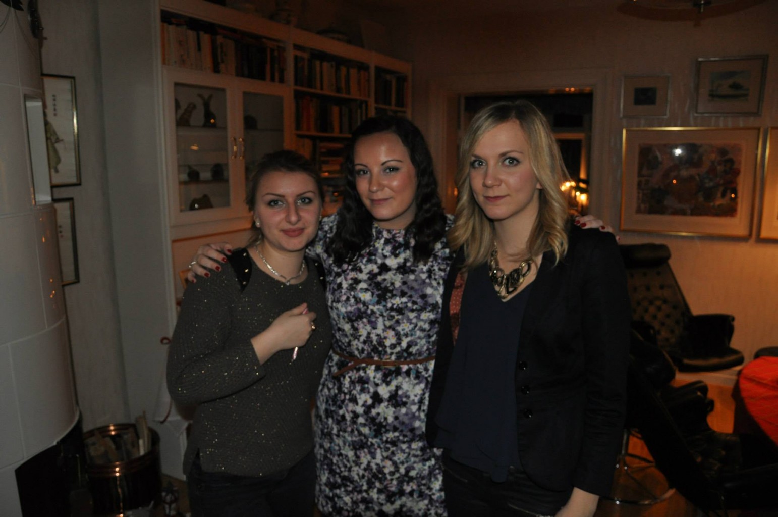 Sitter och myser i sängen med en skål gröt och lyssnar på Josh Groban i bakgrunden, perfekt fredagsmorgon. Har sovit som en prinsessa, gick upp i lagom tid för att hinna koppla av, njuta av min frukost, duscha och lite sånt smått och gott. Ska åka till Ystad idag och träffa familjen jag ska jobba för i Januari månad. Men innan dess ska jag träffa upp Ems, catch up och allmänt mysa. Två små busiga hundar kom precis inspringandes från hallen för att berätta väldigt ivrigt att de har varit på hundrastgården och lekt. Glädje. Men nu ska jag börja göra mig iordning, bjussar på en bild från Julbordet 21/12, på mig, Nelly och Lisa 🙂