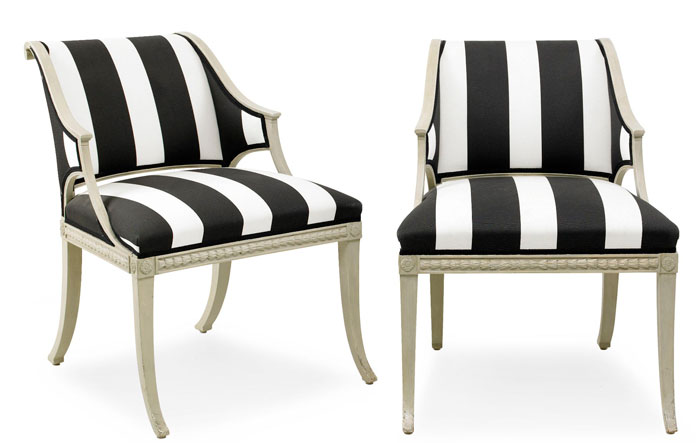 Ett par läckra och sengustavianska fåtöljer av Carl Johan Wadström, mästare i Stockholm 1788-1816, ropas ut på Auktionsverket för 30-35 000 kronor.