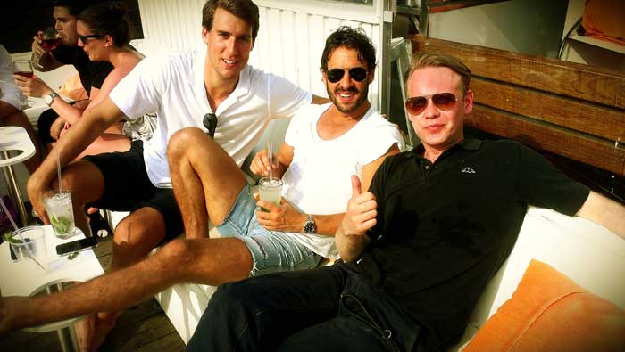Schteek på Strandbryggan 8 juli, 2012 av danielnyhlen Lördagen tillbringades med Henrik, normalt NHL-proffs i Calgary Flames, Andreaz och Seidie. Här sitter vi och svettas i den gassande solen på Strandbryggan. Svalkande sommardrinkar. Seidie i högform. Andreaz och Lilleman fann varandra.