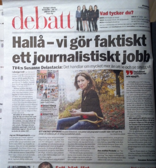 Aftonbladet debatt idag! 9 mars, 2012 av delastacia Jag är gärna ditt sällskap i rutan när jag sänder om kvällarna. Men vet du hur vi hallåor egentligen jobbar? Köp Aftonbladet idag, där jag skriver om mitt jobb som det verkligen ser ut.