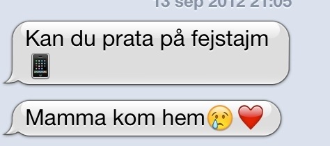 Jag har valt ett yrke, som gör att jag inte alltid kan vara hemma. Vissa föräldrar är hemma, men kanske ändå inte närvarande. Men det känns i hjärtat att få sms som detta: