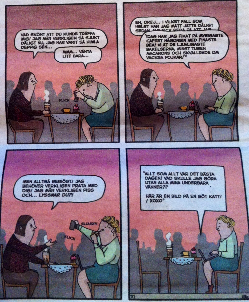 Det fanns ett visst allvar i skämtet, när jag konstaterade att och min vän ju inte hade tagit en bild och checkat in vid fikastunden. Alltså kanske vi aldrig hade varit på plats! Vi skrattade gott, men min reaktion över att jag missat något när vi sagt hejdå, fanns där som en reflex. Jag har alltid varit en person med kameran i högsta hugg, även under den ”analoga” tiden. Jag har massor av minnen att titta tillbaka på, vilket jag är glad över. Men frågan är om vårt digitala behov av att uppdatera vår tillvaro genom bilder och händelser har gått överstyr? Och i så fall varför?