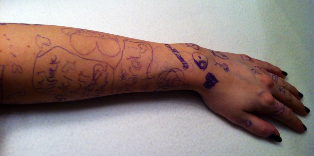 klart lillungen får rita på mammas underarm...
