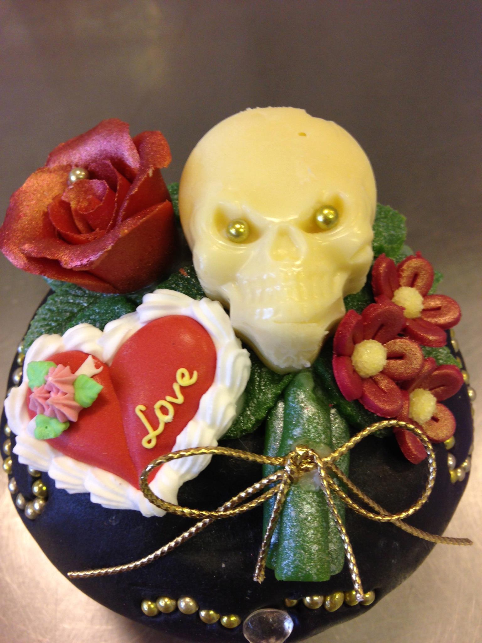 Så klart att hon fick jobba från grunden och snickra ihop sina mästerverk. Jag blev nästan lite stressad av att stå framför ett bord med oändliga möjligheter av marsipanfigurer, färggrann kristyr, pärlor, strössel och chokladformar. Lilltrollet tog det lugnt och började skapa med fantasin, utan tvekan.