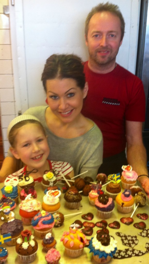Jag har kristyr i håret och grön kramellfärg på fingrarna, just hemkommen efter några galna och exklusiva timmar i köket på Muffinsfabriken. Min dotters glädje över att få gå loss i ett riktigt bageri och skapa sina egna muffins, lyser hela vägen hem.