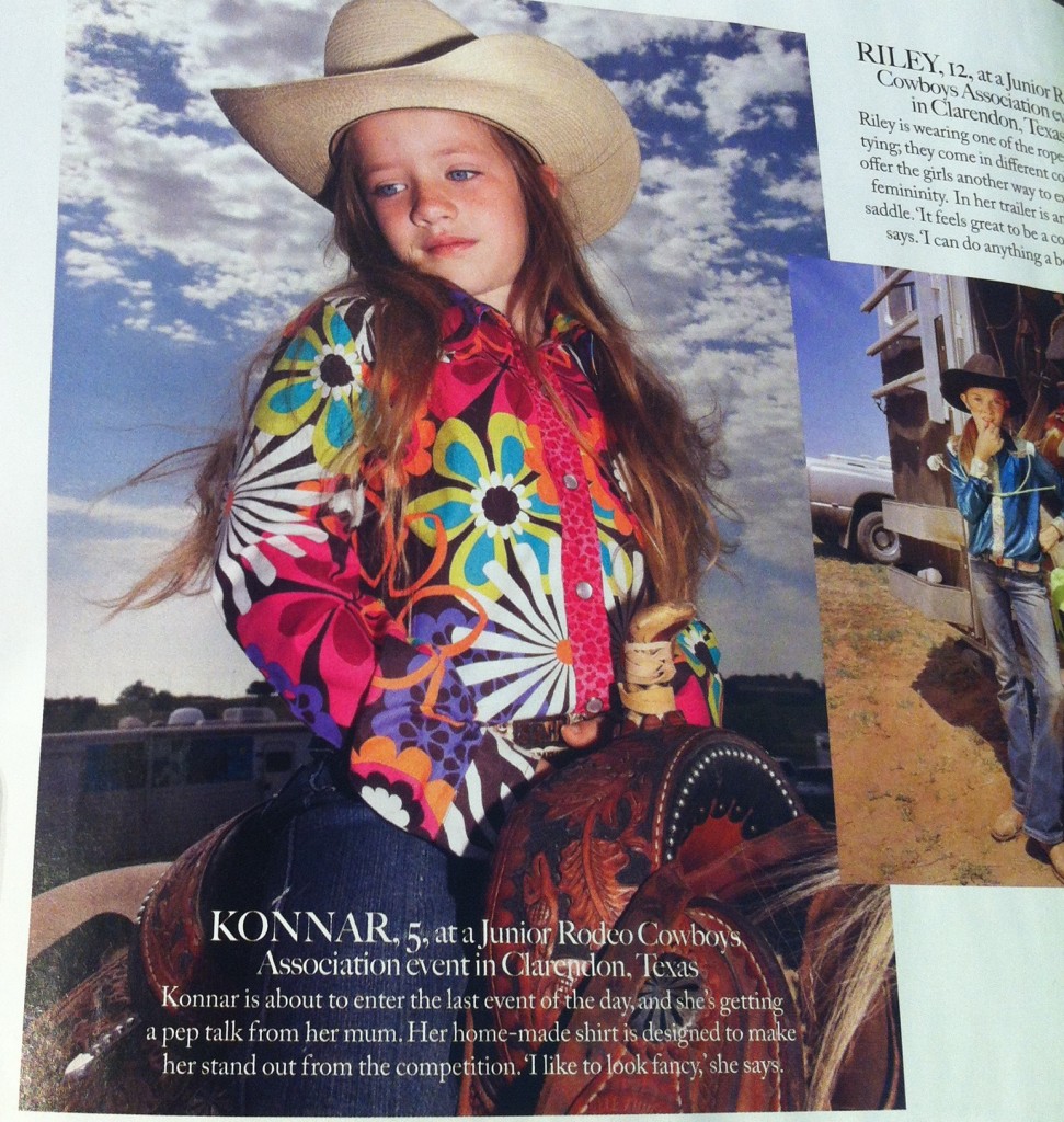 Idag var det dags igen. Jag sa ett snabbt hej till Margerethe på GE couture och skred till verket. Viftade ja till toningar och klippvinkel, här skulle gås igenom tidningar. Mitt tips från mig, är att köpa augustinumret av Marie Claire UK. Ytterst intressant reportage om Rodeo och den unga, kvinnliga generationen som håller på att växa fram. Jag var förstås tvungen att googla på sporten i sig, för mig har det aldrig varit lockande överhuvudtaget. Tydligen var kvinnor en naturlig del av Rodeo vid 1900-talet, men efter en dödsolycka 1929, decimerades donnorna till att bli hästarnas kuttersmycken. För mycket atletism för en vacker kvinna, sas det då.