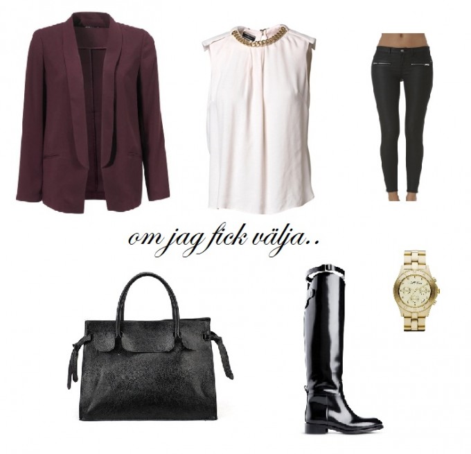 Om jag fick välja höst 2012 24 aug 2012 av Desirée Karlsson Kavaj – Gina tricot, Blus – By Malene Birger (rådhuset i Uppsala bla!), Byxor – Gina tricot, väska – Romwe, stövlar – Acne, klocka – Marc by Marc Jacobs (byt ut stövlarna mot klackar på kvällen så är du redo!)