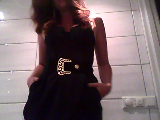 Nu sticker jag på fest! Såhär ser jag ut, sämst bild. Men kortkjol och en korsettliknande överdel till. SAMT en kavaj över. Ska jag rocka både bara ben och lite bröst får det fan bli en kavaj över, nån måtta får det va! wink wink*
